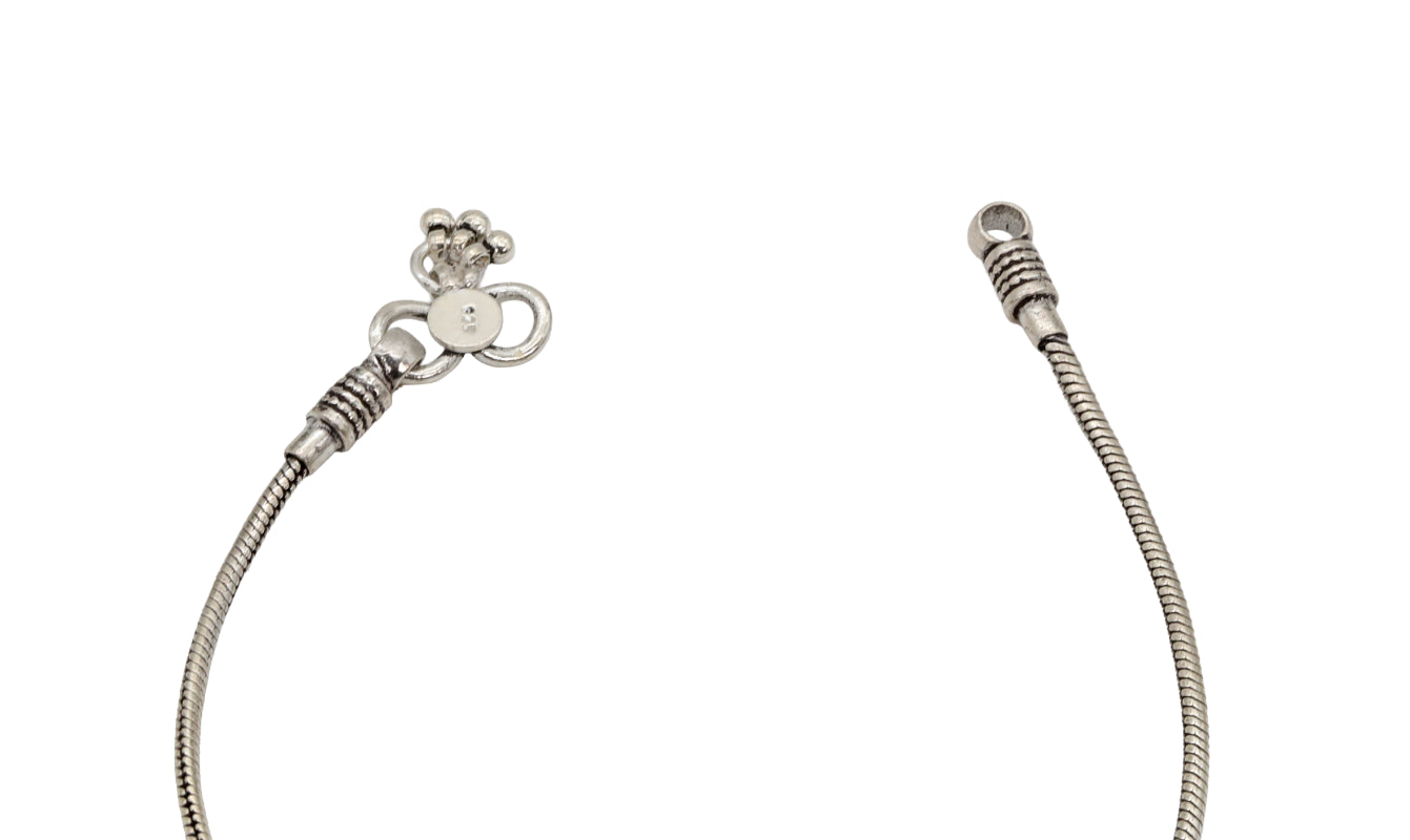 Adorn your ankle with the graceful elegance of the Crimson Droplet Anklet. This captivating piece is meticulously crafted from 92.5 hallmark oxidised silver, featuring a slender snake chain that leads to a magnificent central motif. The detailed floral centerpiece is set with a rich semi-precious red stone and a halo of sparkling cubic zirconia (CZ), while a delicate, pear-shaped semi-precious green stone dangles below. The elegant blend of colors and intricate craftsmanship makes this anklet a perfect accessory for adding a touch of sophisticated charm to any look.