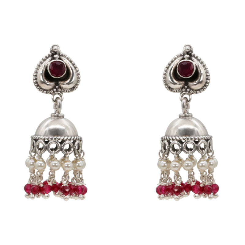 Embrace classic elegance with our Crimson Droplet jhumka earrings. Crafted from brilliant 92.5 Hallmark Sterling Silver, these earrings feature a radiant, shiny finish that beautifully catches the light.