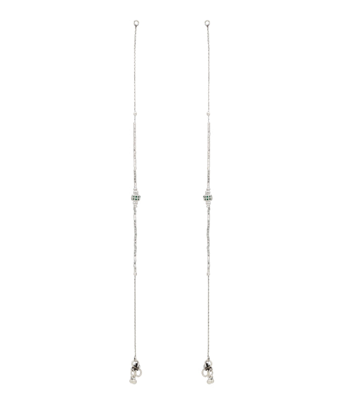 Adorn your ankles with the subtle sophistication of the Harit Bindu Payal, a minimalist anklet crafted in sleek sterling silver. This fine chain features delicate silver beads that draw the eye to a central, subtly sparkling green stone.