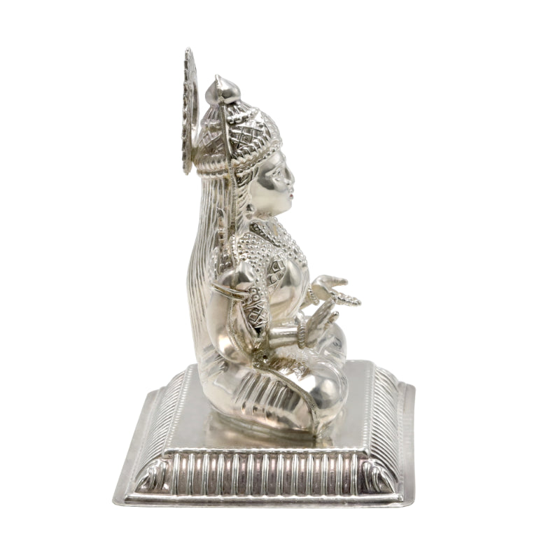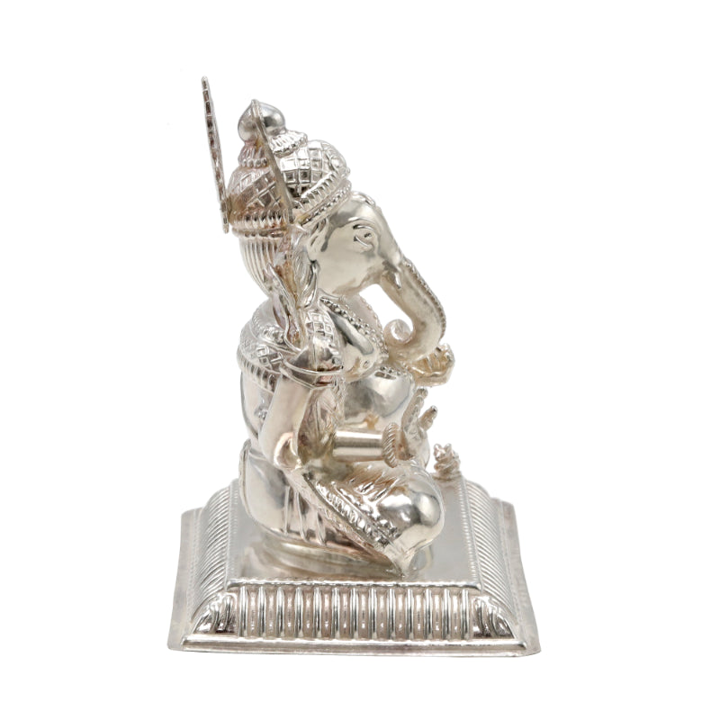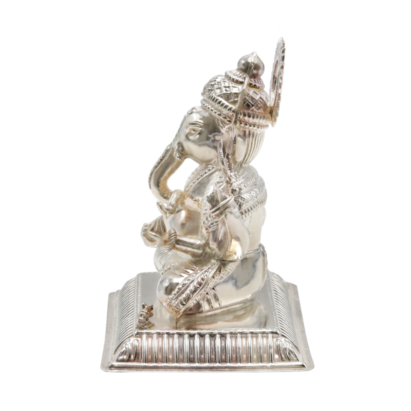 This is a stunning pair of 92.5 hallmark sterling silver idols of Goddess Lakshmi and Lord Ganesha. The shiny, polished finish of the silver highlights the intricate details of the figurines, which are crafted in their traditional forms.