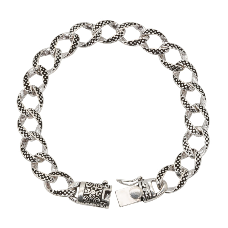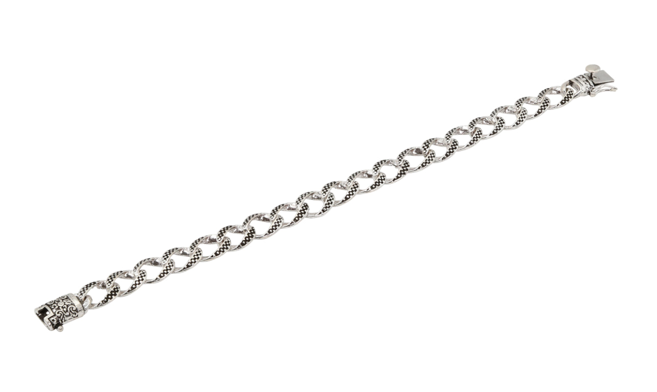 Oxidized Sterling Silver Textured Link Bracelet for Men
