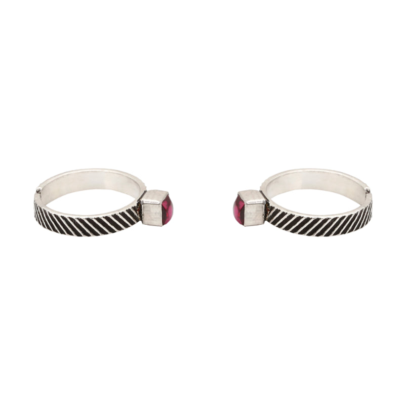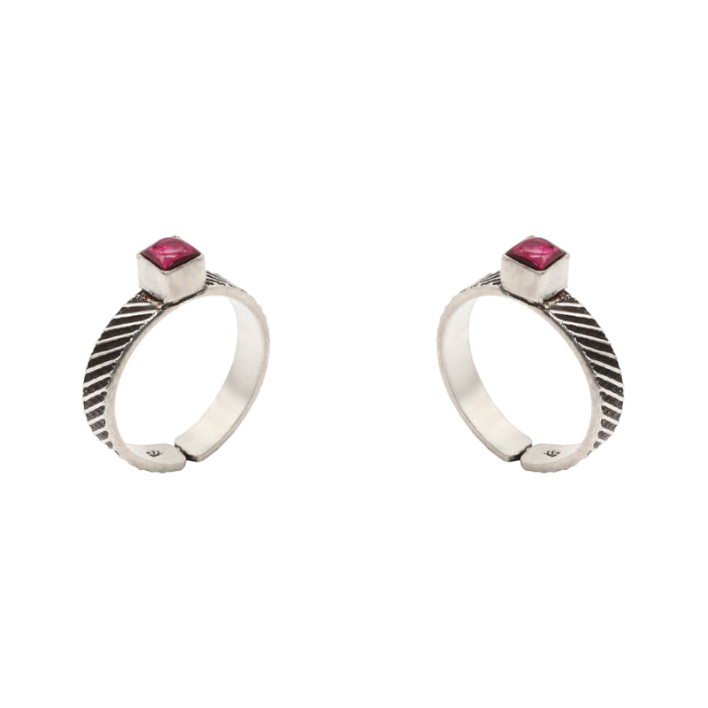 Add a touch of modern sophistication to your step with our Ruby Facet Toe Rings. Crafted from oxidised 92.5 hallmark silver, these toe rings feature a contemporary square setting, each showcasing a vibrant semi-precious red stone.
